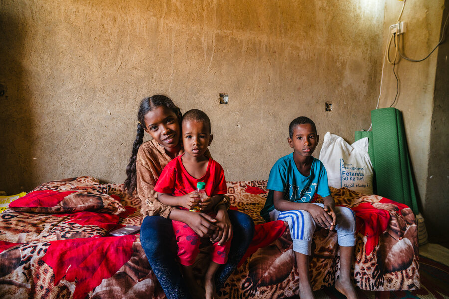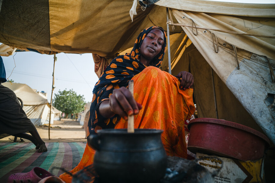 La famille d'Awadiya fait partie des trois millions de personnes qui reçoivent l'aide du PAM chaque mois. Avec son colis alimentaire du PAM, elle prépare de l'assida, une bouillie de sorgho traditionnelle soudanaise, accompagnée de mullah roub, une sauce à base de yaourt et de lentilles.